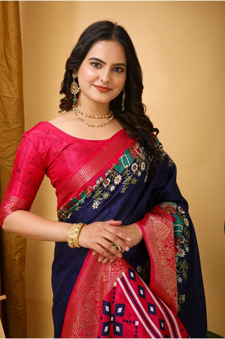 Women's Soft Dola Cotton Kalamkari Printed Saree With Unstitched Blouse