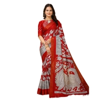 Women's Soft Handloom Cotton Kalamkari Printed Saree With Unstitched Blouse 5.5Mtr (Red)