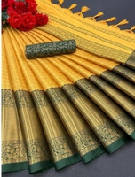 Women's Cotton Silk Woven Design Saree With Unstitched Blouse