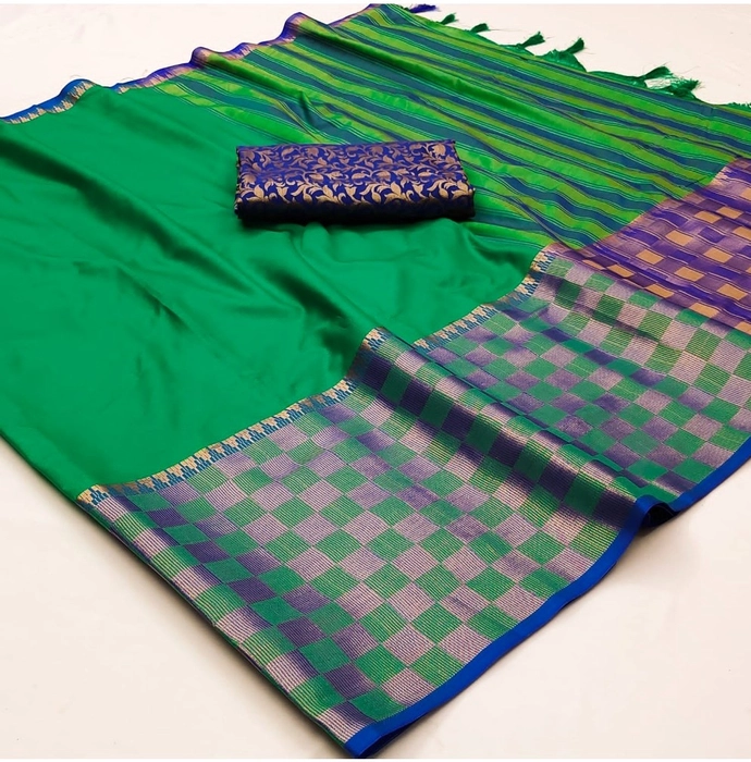 Women's Cotton Silk Checkered Saree With Unstitched Blouse