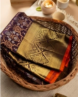 Women's Soft Lichi Silk Printed Saree With Unstitched Blouse 5.5Mtr (Purple)