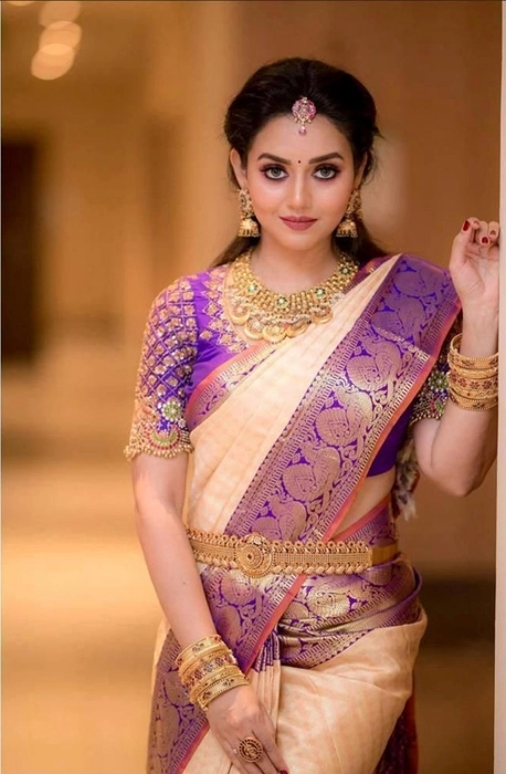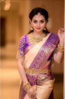 Women's Soft Lichi Silk Printed Saree With Unstitched Blouse 5.5Mtr (Purple)