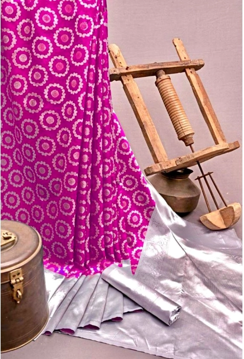 Women's Soft Lichi Silk Printed Saree With Unstitched Blouse 5.5Mtr (Pink)