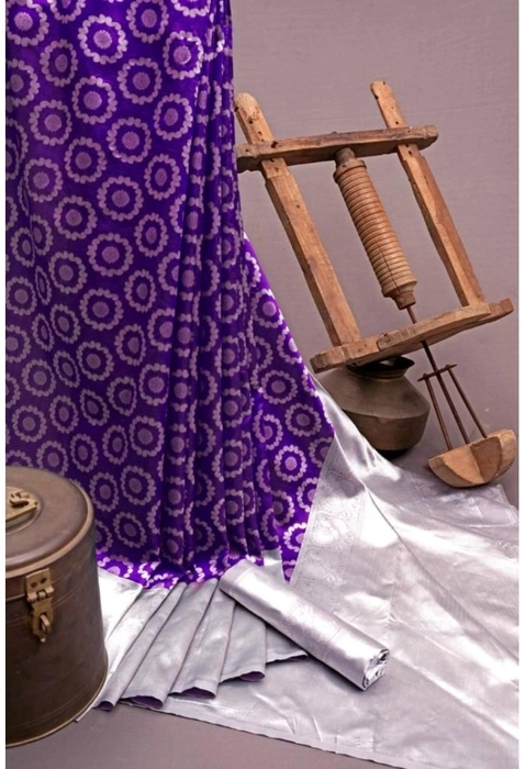 Women's Soft Lichi Silk Printed Saree With Unstitched Blouse 5.5Mtr (Purple)