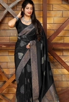 Women's Litchi silk Printed Saree With Unstitched Blouse (Black)