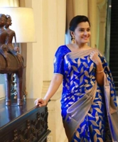 Women's Litchi silk Printed Saree With Unstitched Blouse (Blue)