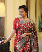 Women's Litchi silk Printed Saree With Unstitched Blouse (Red)