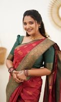 Women's Litchi silk Printed Saree With Unstitched Blouse (Red)