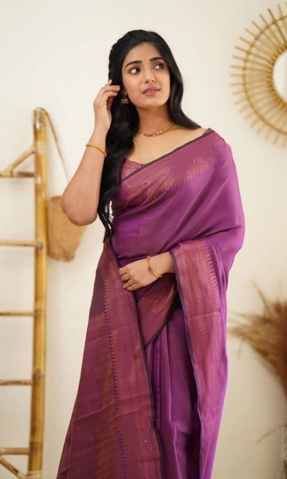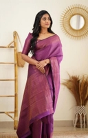 Women's Litchi silk Printed Saree With Unstitched Blouse (Purple)