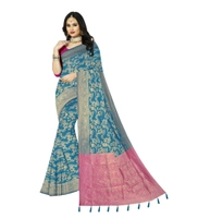 Women's Banarasi Printed Saree With Unstitched Blouse 5.5Mtr (Aqua Blue)