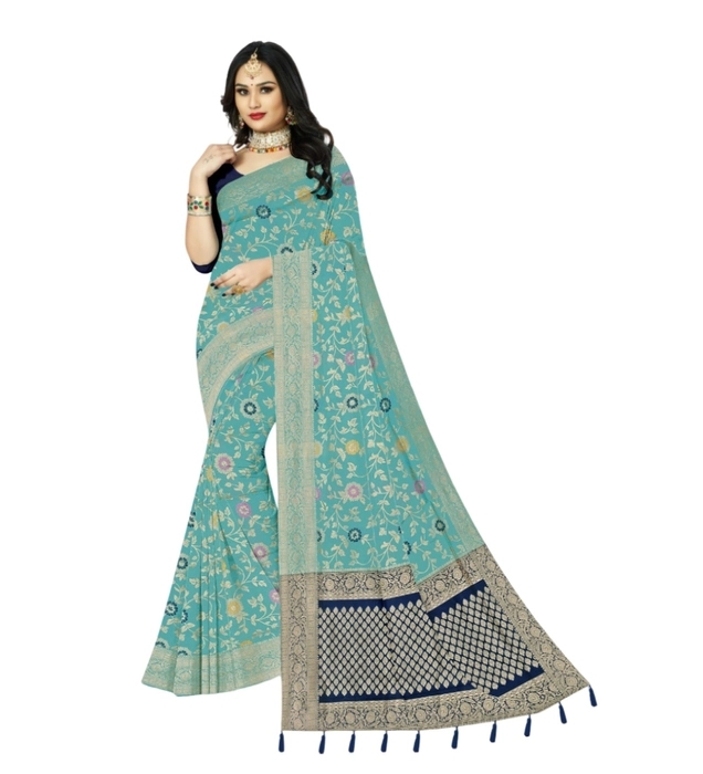 Women's Banarasi Printed Saree With Unstitched Blouse 5.5Mtr (Firozi)