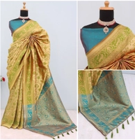 Women's Banarasi Printed Saree With Unstitched Blouse 5.5Mtr (Golden)