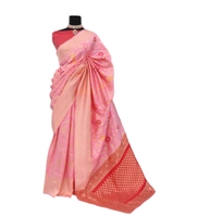 Women's Banarasi Printed Saree With Unstitched Blouse 5.5Mtr (Pink)