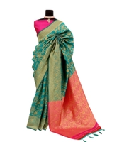 Women's Banarasi Printed Saree With Unstitched Blouse 5.5Mtr (Rama)