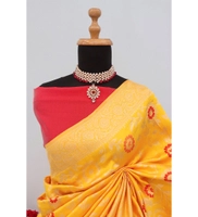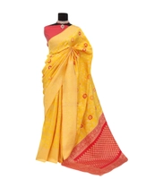 Women's Banarasi Printed Saree With Unstitched Blouse 5.5Mtr (Yellow)