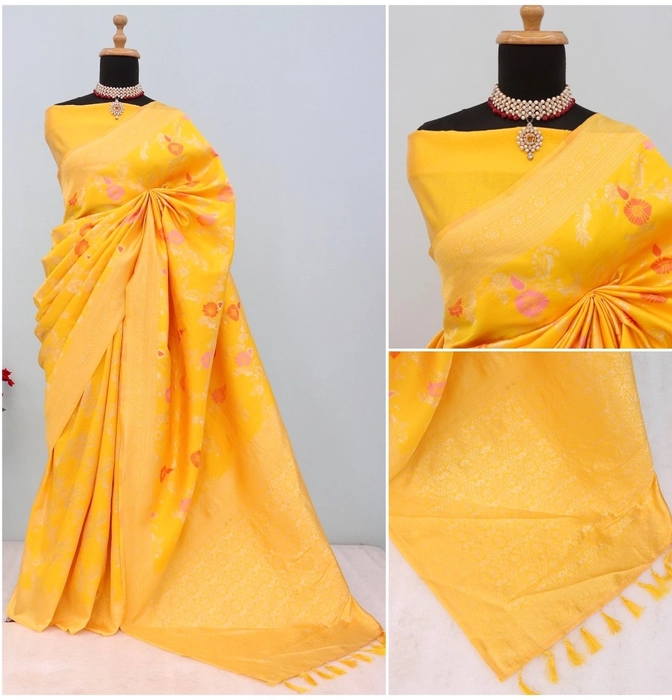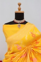 Women's Banarasi Printed Saree With Unstitched Blouse 5.5Mtr (Yellow)