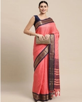 Women's Cotton Silk Checkered Saree With Unstitched Blouse 5.5Mtr (Pink)