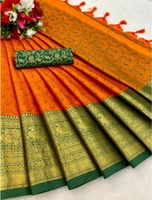 Women's Cotton Silk Printed Saree With Unstitched Blouse 5.5Mtr (Orange)