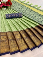 Women's Cotton Silk Printed Saree With Unstitched Blouse 5.5Mtr (Pista)