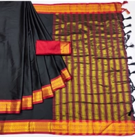 Women's Cotton Silk Solid Saree With Unstitched Blouse 5.5Mtr (Black)