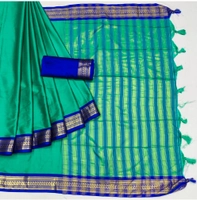 Women's Cotton Silk Solid Saree With Unstitched Blouse