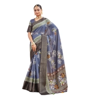 Women's Crepe Silk Printed Saree With Unstitched Blouse 5.5Mtr (Grey)