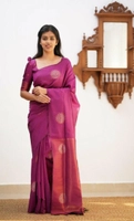 Women's Litchi silk Printed Saree With Unstitched Blouse (Dark Pink)