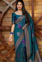 Women's Litchi silk Printed Saree With Unstitched Blouse (Rama Blue)
