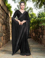 Women's Rangoli Diamond Weaving - Stone Work Saree With Unstitched Blouse 5.5Mtr (Black)