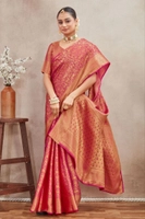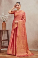 Women's Silk Blend Floral Printed Saree With Unstitched Blouse 5.5Mtr (Peach)