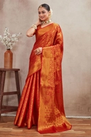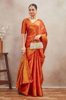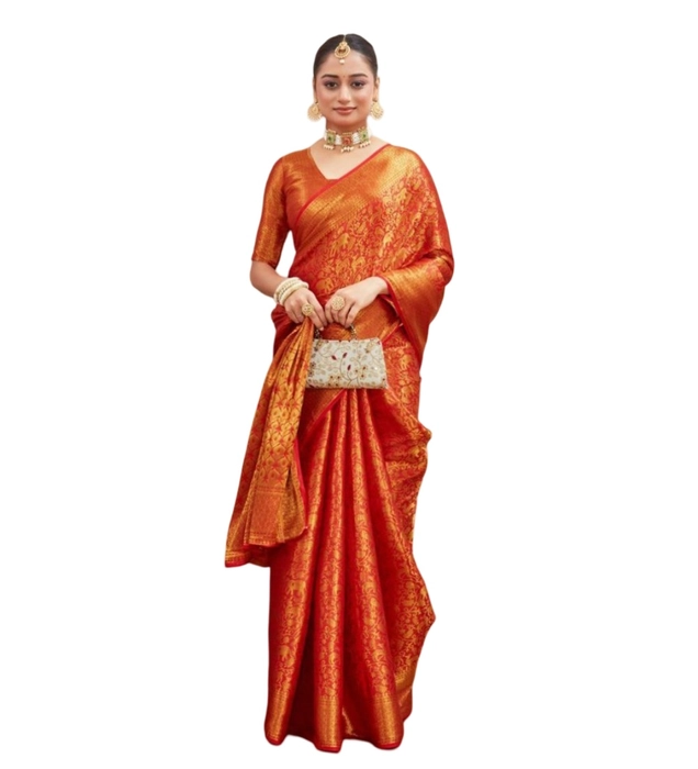 Women's Silk Blend Floral Printed Saree With Unstitched Blouse 5.5Mtr (Red)