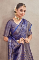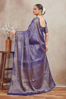 Women's Silk Blend Floral Printed Saree With Unstitched Blouse 5.5Mtr (Royal Blue)