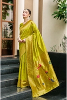 Women's Silk Blend Paithani Weaving Saree With Unstitched Blouse 5.5Mtr (Lime Green)