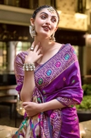 Women's Silk Blend Paithani Weaving Saree With Unstitched Blouse 5.5Mtr (Purple)