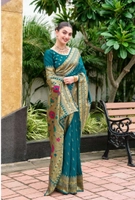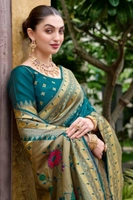 Women's Silk Blend Paithani Weaving Saree With Unstitched Blouse 5.5Mtr (Teal)