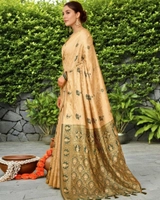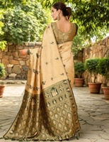 Women's Silk Blend Woven Paithani Saree With Unstitched Blouse 5.5Mtr (Cream)