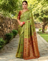 Women's Silk Blend Woven Paithani Saree With Unstitched Blouse 5.5Mtr (Light Green)