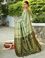 Women's Silk Blend Woven Paithani Saree With Unstitched Blouse 5.5Mtr (Mahendi)