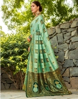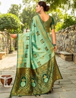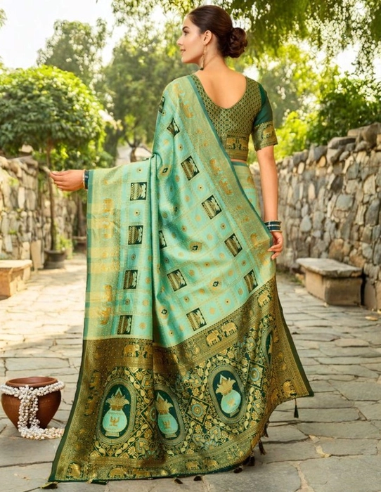 Women's Silk Blend Woven Zari Work Saree With Unstitched Blouse 5.5Mtr (Mint Green)