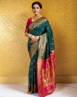 Women's Silk Blend Zari Weaving Saree With Unstitched Blouse 5.5Mtr (Dark-Green)