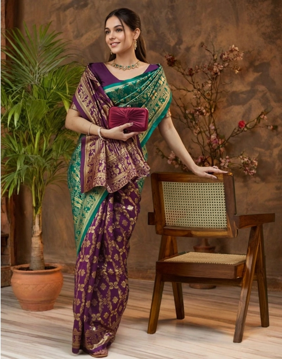 Women's Silk Blend Zari Weaving Saree With Unstitched Blouse