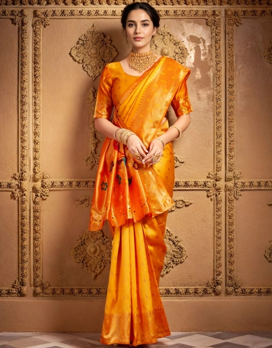 Women's Silk Blend Zari Weaving Saree With Unstitched Blouse 5.5Mtr (Mustard)