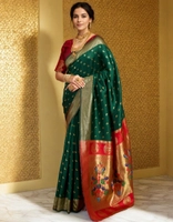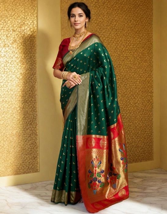 Women's Silk Blend Zari Woven Saree With Unstitched Blouse 5.5Mtr (Green)