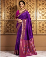 Women's Silk Blend Zari Woven Saree With Unstitched Blouse 5.5Mtr (Purple)