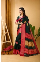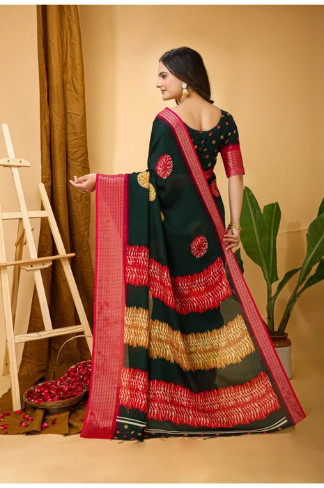 Women's Soft Blooming Marshmallow Fabric Kalamkari Printed Saree With Unstitched Blouse 5.5Mtr (Green)