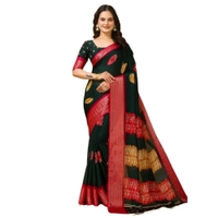 Women's Soft Blooming Marshmallow Fabric Kalamkari Printed Saree With Unstitched Blouse