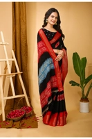 Women's Soft Blooming Marshmallow Fabric Kalamkari Printed Saree With Unstitched Blouse