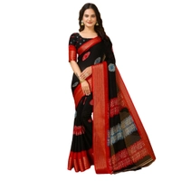 Women's Soft Blooming Marshmallow Fabric Kalamkari Printed Saree With Unstitched Blouse 5.5Mtr (Black)