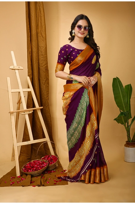 Women's Soft Blooming Marshmallow Fabric Kalamkari Printed Saree With Unstitched Blouse