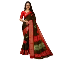 Women's Soft Blooming Marshmallow Fabric Kalamkari Printed Saree With Unstitched Blouse